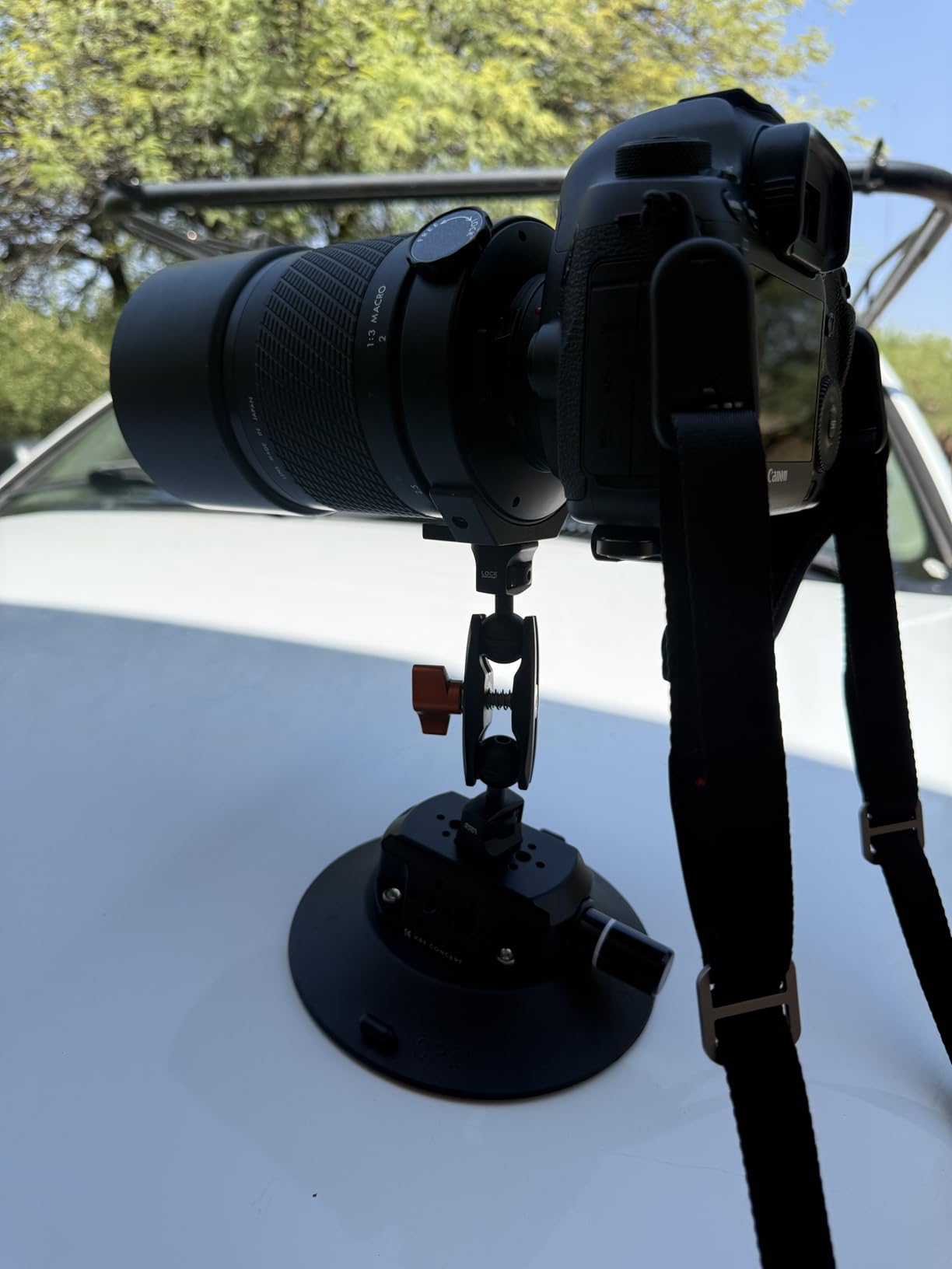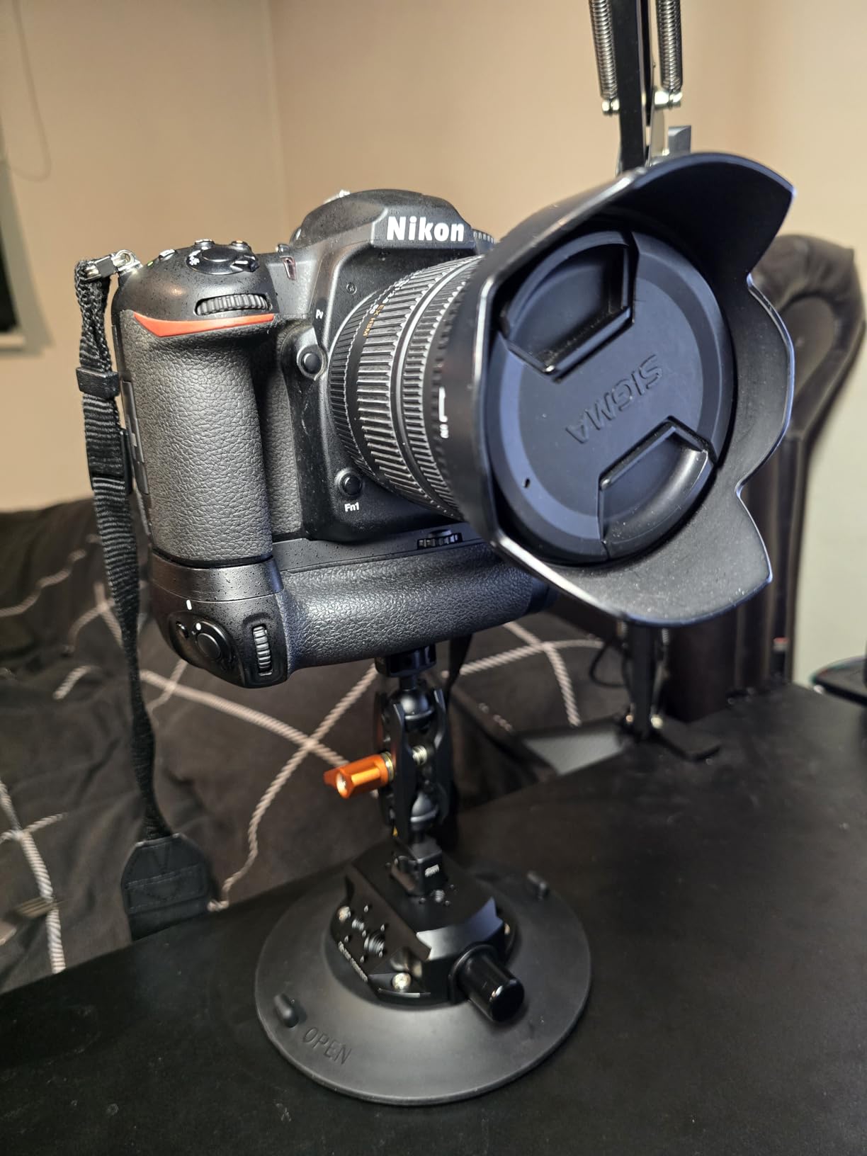 -I have two much smaller suction-cup rigs, suitable for actioncam and smaller mirrorless cameras. This one would certainly hold a much larger camera (as long as the surface is suitable, glass is best).