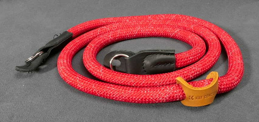 This nylon climbing rope-style camera strap from K&F Concept is comfortable to wear and hold in your hand. I like the ring attachments and the addition of the protective leather ends where it attaches to my camera. While the nylon climbing rope strap is soft, mine already has some scuffs in the fabric braid out of the box, so I question the strap's long-term durability at this point. Priced under $15 at the time of this review, it was affordable and easy to attach to the lugs on my Canon DSLR. A recommended buy, however, with the one caveat about the long-term durability of the nylon braid.